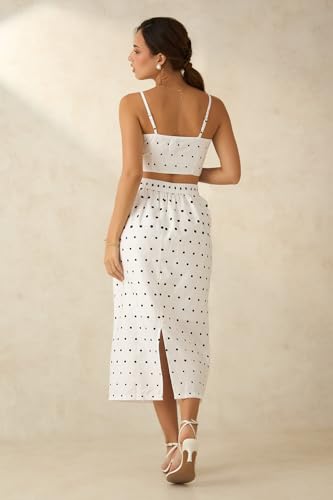 VIRGIO 100% Cotton Polka Midi Skirt with Fitted Style 2