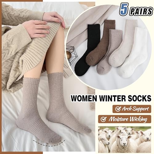EBMORE 5 Pairs Women Merino Wool Boot Socks Warm Thermal Winter Thick Hiking Cozy Cabin Crew Comfy Socks for Ladies 5
