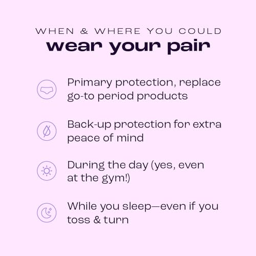 • GREAT TO WEAR DURING THE DAY AND OVERNIGHT: Protects you during your busy days or restful nights (think work, school, sports, travel, concerts, sleeping!). Our goal is to make you feel confident and comfortable, and not have your day interrupted. Best of all, the full front-to-rear leak proof layer is designed to stop even the sneakiest of leaks - feel free to sleep on your back or stomach!