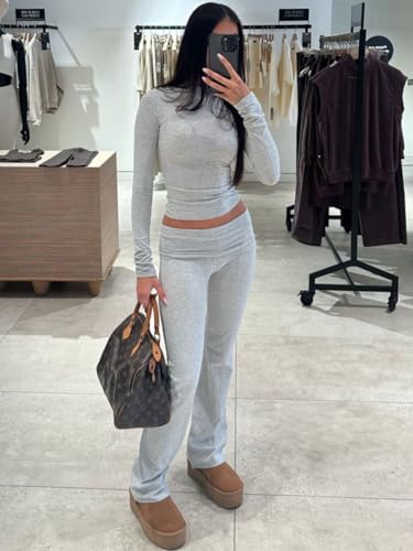 • WONDERFUL FEATURES: You can experience the ultimate comfort in this 2 piece lounge set, which features a soft and high-stretchy material that provides a body-hugging fit. It helps you to look casual yet sexy. The fitted crew neck, long sleeve top and fold-over low rise flare pants create a flattering image, perfect for everyday wear.