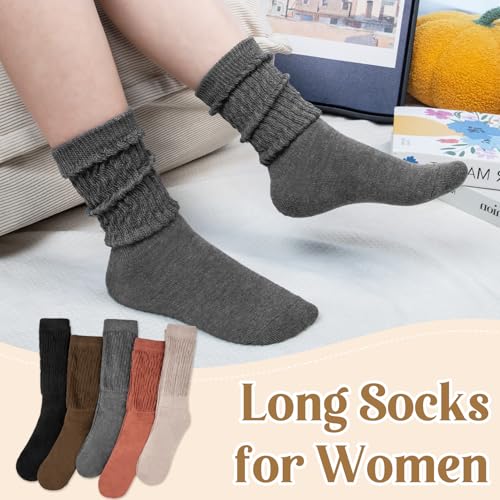 Justay 5 Pairs Slouchy Socks for Women - Slouch Long Crew Knit Boot Athletic Calf Tube Scrunch Socks 5