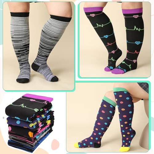 • Plus Size Compression Socks: You will receive 6 pairs wide calf compression socks in 6 styles. Additionally, there are many different colors and patterns available, match their individual style preferences