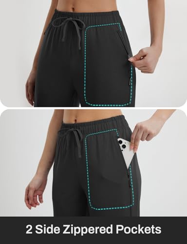 HOT ! baleaf Womens Yoga Capri Pants with Zipper Pockets Summer Drawstring Capris Joggers Lounge Crop 19"