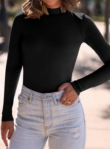 • Features: Featuring a classic mock neck design, slim-fit, long sleeve, fitted, ribbed, knit, stretchy, the high neck design adds a touch of elegance and sophistication to your outfit, making it suitable for various occasions. Fitted long sleeve shirt women can accentuate curves and provide a flattering silhouette for all women