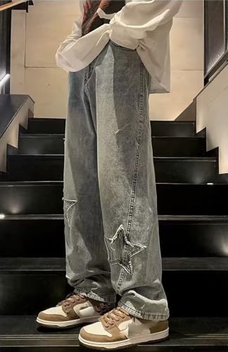More information about jupkem Men's Y2K Baggy Jeans Star Pattern Wide-Leg Retro Distressed Gothic Denim Pants Casual Fashion Street Style Clothing