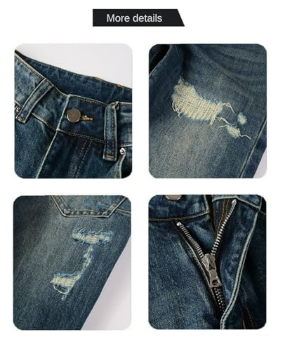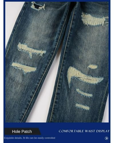 More information about Jeans Pants Trouser Denim Men Stretch Slim Fit Trendy Street Worn Hole Washed Blue Grinding Fading Patched Casual Small Leg(Dark Blue,29)