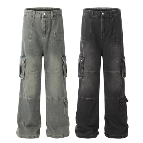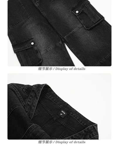 HOT ! Jeans Pants Trousers Denim Retro Street Trendy Multi Pocket Washed Straight Tube Casual Commuting for Men