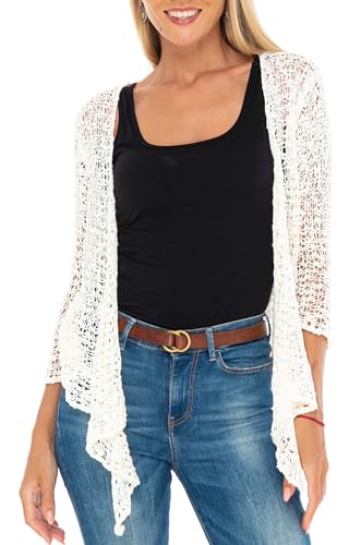 • TRAVEL FRIENDLY: Pack this open weave sweaters for women for your next vacation or weekend getaway. This hollow out sweater folds down to a compact size that fits in your purse without wrinkling. Simply pull it out, give it a shake, and it's ready to wear. However, due to the open weave, it may catch on jewelry, so be mindful when accessorizing. If you are gentle with your clothes, this bolero shrug is the perfect choice