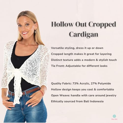 HOT ! SHU-SHI Womens Cropped Cardigan Tie Front Knit Shrug Summer Open Weave Hollow Out Sweater