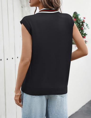 More information about LOMON Sweater Vest Women 2025 Cap Sleeve Striped V Neck Tank Tops Trendy Summer Button Down Knit Cardigan Top with Pockets