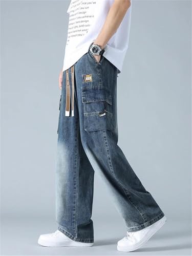 More information about Men's Summer Straight Jeans Multi-Pockets Wide Leg Denim Cargo Pants Lightweight Baggy Jeans Trousers