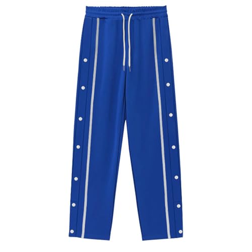 HOT ! Mens Sweatpants Cotton Elastic Waist Wide Leg Side Split Button Baggy Joggers Casual Pants Trendy Basketball Running