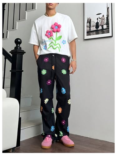 More information about Men's Floral Parachute Pants Ruched Y2K Drawstring Waist Wide Leg Streetwear Pants