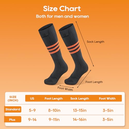 • 【Soft Material & Fitted Calf】These electric socks boast high-quality, soft fabrics for a cozy fit all day long. They offer 360° heat coverage for even warmth, with a specially designed heel to minimize friction and cushion your steps. The ergonomic collar grips your foot, preventing the socks from sliding, and these carefully designs strengthen the durability of the heated socks women.