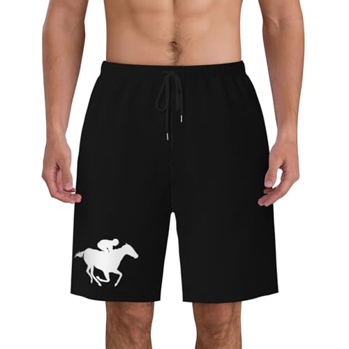 HOT ! Horse Racing Silhouette Men's Quick-Dry Board Shorts 7" - Swim Trunks Summer Hawaii Beach