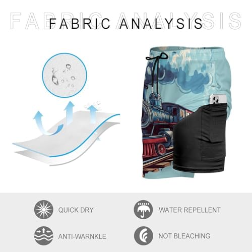 Train Mens Swim Trunks with Quick-Drying Lining Beach Shorts for Outdoor Sports 6