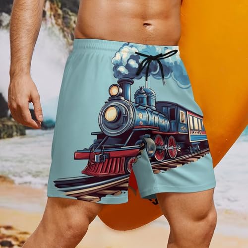 HOT ! Train Mens Swim Trunks with Quick-Drying Lining Beach Shorts for Outdoor Sports