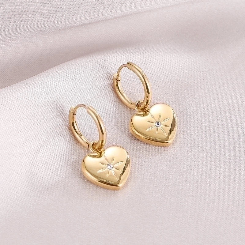 More information about 1 Pair Retro Heart Shape Inlay 304 Stainless Steel Zircon Gold Plated Drop Earrings