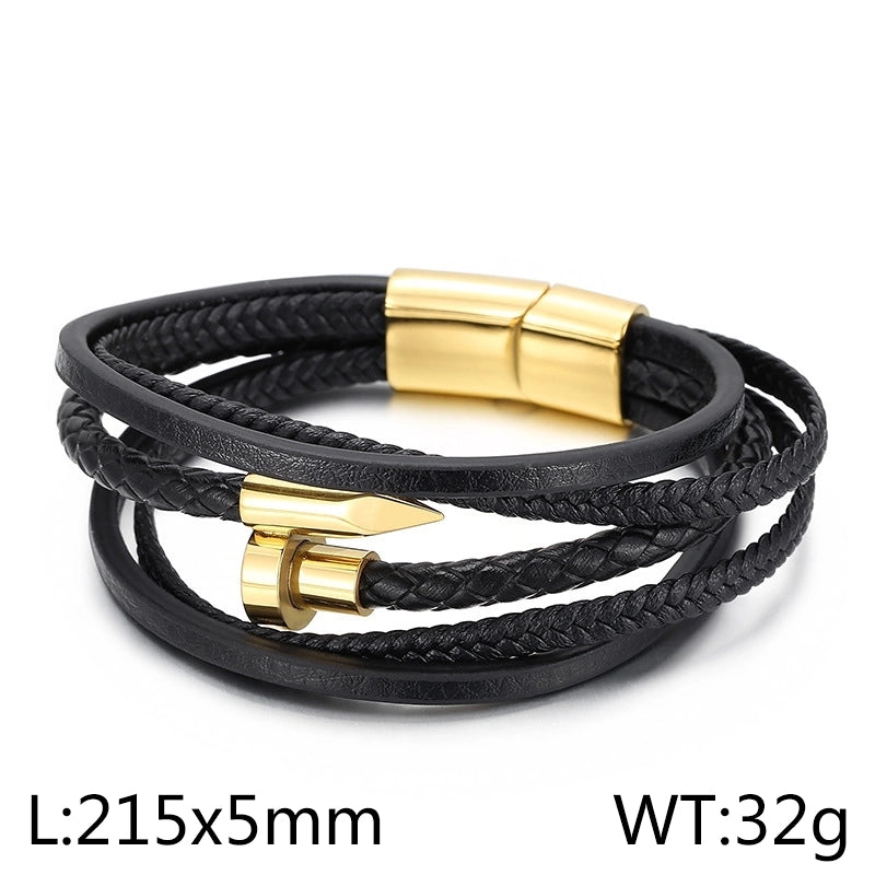 HOT ! Vintage Style Geometric Color Block Stainless Steel Leather Plating 18K Gold Plated Men's Bracelets