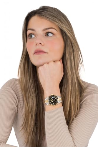 • Steel and gold tone stainless steel case 37.5mm diameter x 11mm thick; Black dial; Luminous hands and hour markers