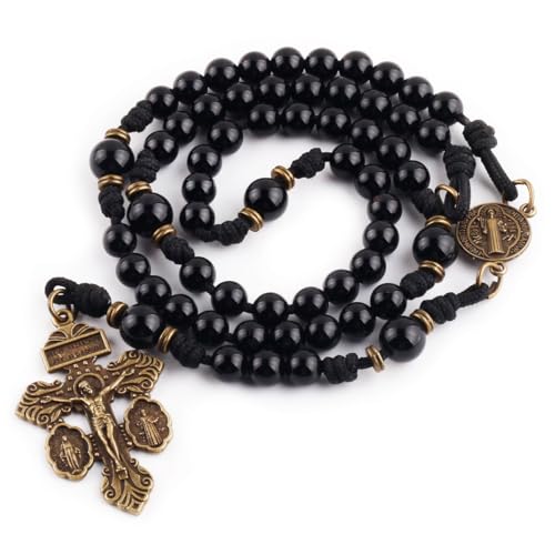 St. Benedict Black Onyx Stone Paracord Rosary – Antique Bronze Catholic Prayer Beads for Men & Women, Durable Handmade Necklace Gift 5