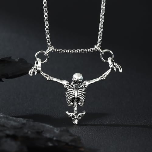 • Unique Design: This ancient silver skull skeleton necklace is designed in a dark Gothic style, full of mystery and ancient taste, two chains lock the skeleton firmly, the skeleton opens its arms to present a cross structure, which is very individual and artistic sense