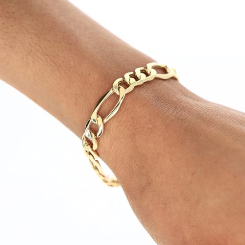 More information about Nuragold 10k Real Yellow Gold Figaro Link 8mm Chain Bracelet (7"-9") Italian Jewelry for Men & Women