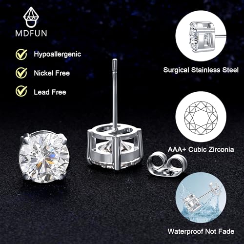 HOT ! MDFUN Titanium Stud Earrings Set Hypoallergenic Cubic Zirconia Round Surgical Stainless Steel 4 Prong Stud Earring Jewelry for Women Men 3-8mm