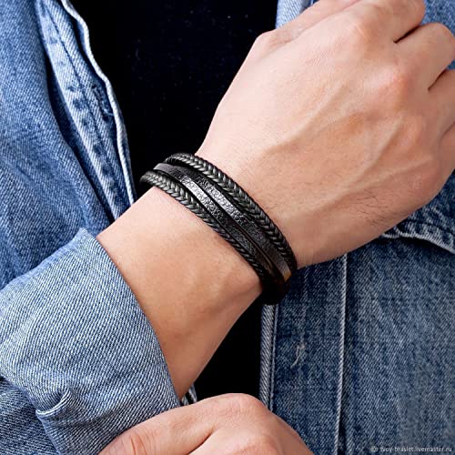 • BRAIDED BRACELETS FOR MEN: The mens bracelet was made with genuine leather material. High quality stainless steel clasp free of lead and nickel, hypoallergenic and healthy. Strong and durable. Double color leather braided, High quality leather material, purely handmade tightly woven bracelet, soft and comfortable touch feeling