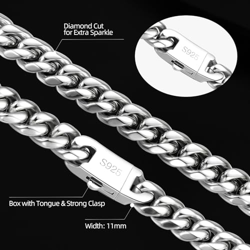 HOT ! 11mm Miami Cuban Link Chain Neckalces for Men Women, 316l Stainless Steel and 925 Sterling Silver Filled, Silver Cuban Mens Necklaces Jewelry Gifts Available In 20/22/24/26/28/30 Inches
