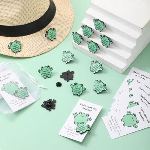 Lyrow 50 Pcs Appreciation Gift Pin Cartoon Cute Frog Brooch Collar Pin Cheer up Cards with Organza Bags Employee Thank You Gift Coworker Recognition Metal Badge Backpack Decoration 6