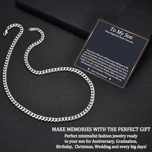 • Ideal Gift Choice for Son: This Cuban chain necklace is a wonderful way to show your son your love and support. This son gift comes with a cool cuban bracelet, a pretty gift box and a meaningful card that reads, "... Follow your dreams... I'll always be with you." This thoughtful gift will surely touch his heart and show him how much you care. Whether it's for a birthday, Christmas, Thanksgiving, graduation, or any special occasion, this necklace will make him feel loved and cherished