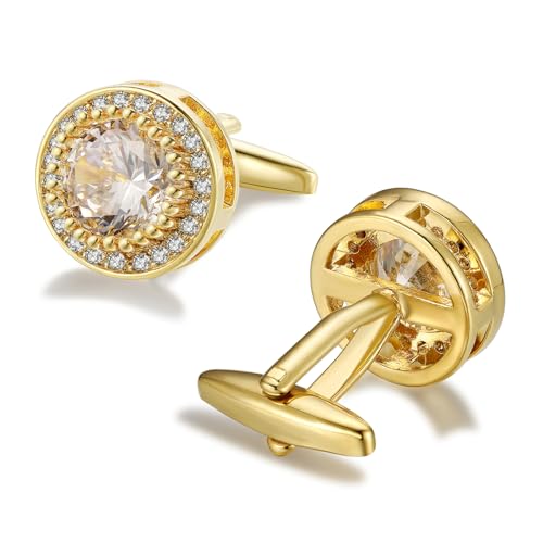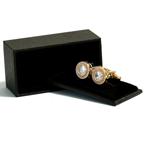 More information about Crystal Cufflinks for Men CZ Cuff Links Sparkle Diamond Gold Ornate Cufflinks for Wedding Groom Best Man