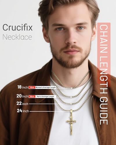 • Exquisite Craftsmanship: Showcasing impeccable attention to detail, this crucifix necklace for men is a high-grade religious jewelFade Resistant: Treated with unique color-retention technology, this crucifix necklace retains its vibrant color for a long time, ensuring that the cross chain for men maintains its bright appearance whether worn daily or for special religious occasionsry piece crafted with exquisite workmanship to embody the solemnity of faith