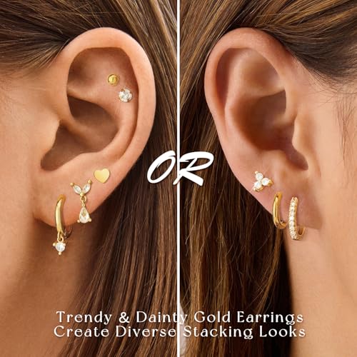 • Earrings Sets for Multiple Piercing: Including gold flat back stud earrings and gold hoop dangle earrings. Stud and hoop earrings set for multiple piercings, such as cartilage earring, helix piercing, first hole, second hole, third hole, tragus piercing, etc. Feel free to match your style!