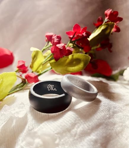 AERA CUSTOMIZED His & Hers Silicone Wedding Band Set - Engrave Any Text, Symbol, Image - Ships Next Day 5