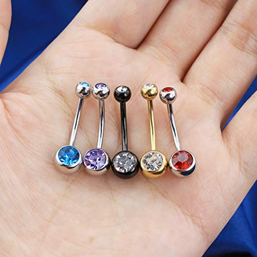 OUFER Belly Button Rings Pack 14G Surgical Steel Shiny CZ Belly Rings Jewelry Crystal Balls Navel Piercing Jewelry 5