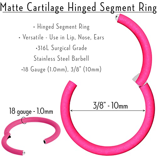 • PREMIUM QUALITY & FIT: 18g (1mm) thickness, 10 mm (3/8 inches) inner diameter segment ring / septum ring / conch hoop ensures comfortable wear for both men and women. Made from 316L surgical steel for durability