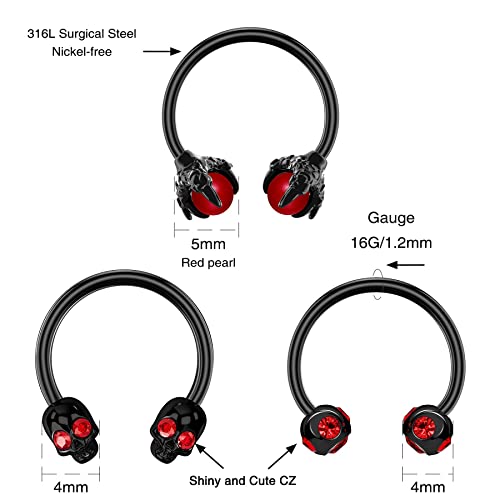 • ❤6Pcs Septum Rings❤: 6Pcs Septum Rings Contain 2Pcs Claw Natural Stone Helix Earrings, 2Pcs Skull Daith Earrings and 2Pcs Red Gem Ball Nose Rings Hoop