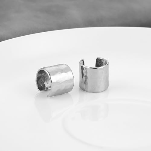 HZMAN Hammered Ear Cuff Earrings for Men Women Retro Stainless Steel Lightweight No Piercing Clip On Cartilage Earring Jewelry Gift 1