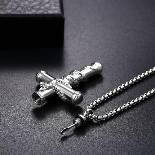HOT ! OIDEA Snake Cross Urn Necklaces for Ashes: Men Women Openable Stash Necklace with Spoon Ashes Necklace Memorial Keepsake Cremation Jewelry for Human Ashes