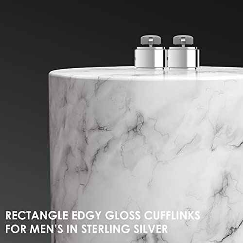 Sterling Silver Rectangle Edgy Gloss Cufflinks for Men - Luxury Men's Cuff Links With Elegant Gift Box - Crafted With .925 Sterling Silver - Suitable for All Occasions 1