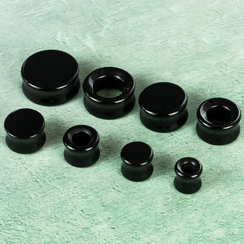 More information about Obsidian Ear Gauges Set, 4 Pack Glossy Black Plugs & Tunnels, Mirror Polished Volcanic Stone (size 00G-1")