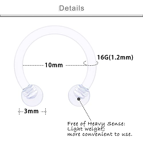 • 16 Guage Hoop Earrings Package include: 8pcs clear flexible Horeshoes Rings Piercing Jewelry and 8pcs Acrylic Colorful Horeshoes Rings.