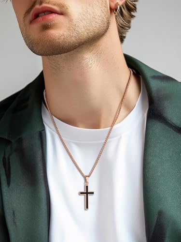 U7 Simple Cross Necklace for Men Women, Stainless Steel Silver Black Gold Latin Cross Pendant Necklaces, Custom Engravable, Length 22-24 Inches 7
