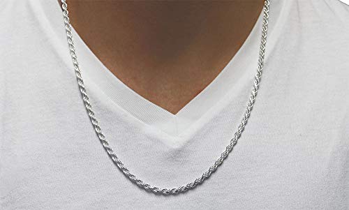 More information about Verona Jewelers 925 Sterling Silver Necklace 4MM Italian Diamond-Cut Rope Chain Necklace for Men and Women- 925 Braided Twist Italian Necklace, Rope Chain For Men,Silver chain 925 Rope Chain (16-36)