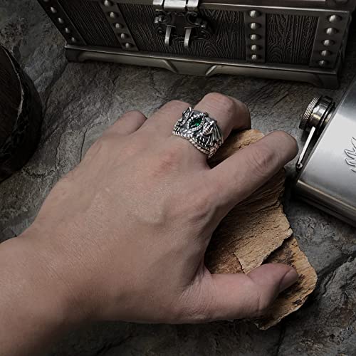 bahamut 925 Sterling Silver Mens Aragorn Rings of Barahir with Green Cubic Zirconia,Snake Band, LOTR Cosplay Jewelry 6