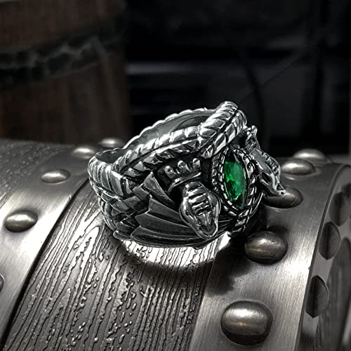 HOT ! bahamut 925 Sterling Silver Mens Aragorn Rings of Barahir with Green Cubic Zirconia,Snake Band, LOTR Cosplay Jewelry