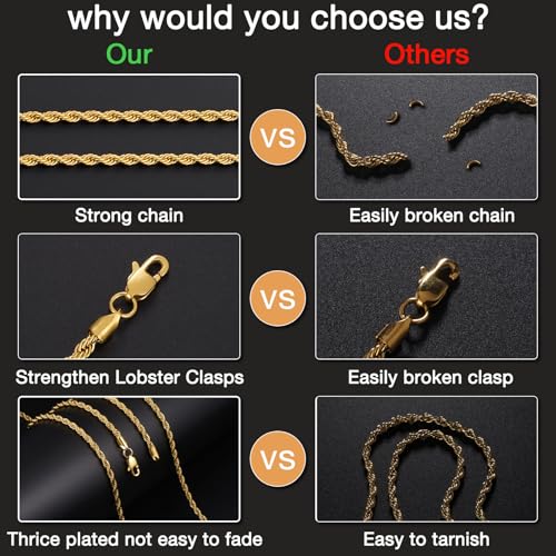 • 【Perfect Gift Selection】Our Gold Plated rope chain for men comes in various lengths and widths to accommodate different preferences. Packaged in an elegant gift box, it’s a thoughtful present for special occasions like anniversaries, birthdays, weddings, and holidays. Gift this lovely piece to add a touch of charm to your loved one’s collection.