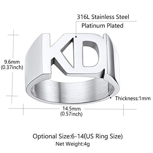 • Custom Name Ring:: Premium hypoallergenic 316L stainless steel is nickel-free, skin-friendly, and non tarnish. The high polish finish ensures long lasting color that won't fade. Available in ring sizes from US 6 to US 14.